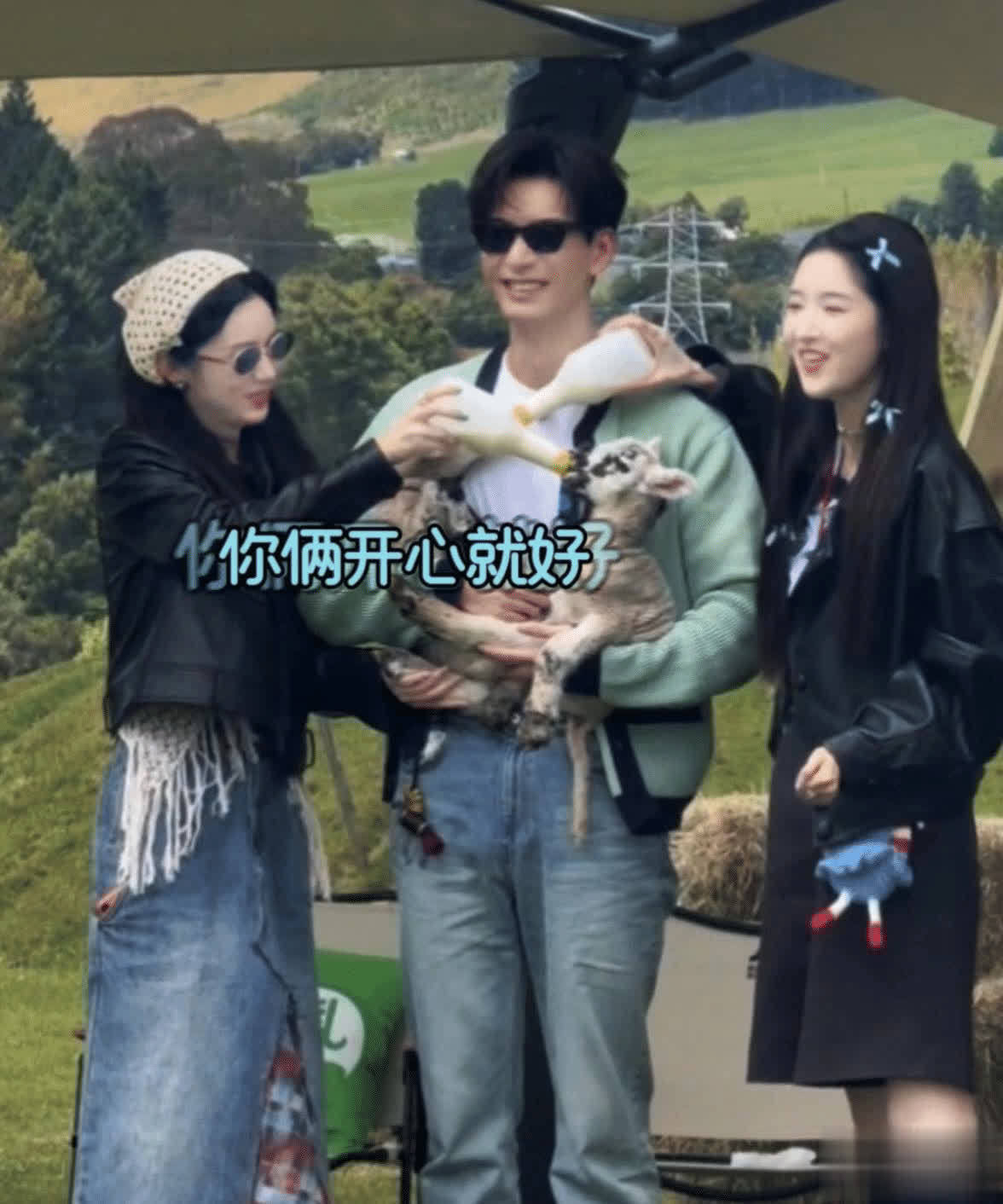综艺《地球超新鲜2》的新西兰录制路透中,陈星旭怀抱两只软萌小羊稳稳站立,王玉雯与周也各执奶瓶,一左一右贴近他胸前专注喂食。这本该是一幅温馨治愈的画面,却因三人独特的站位和陈星旭那标志性的无奈表情,瞬间点燃了网友的笑点——熟悉的配方,熟悉的味道,这不就是传说中的“星光大赏3.0”吗?